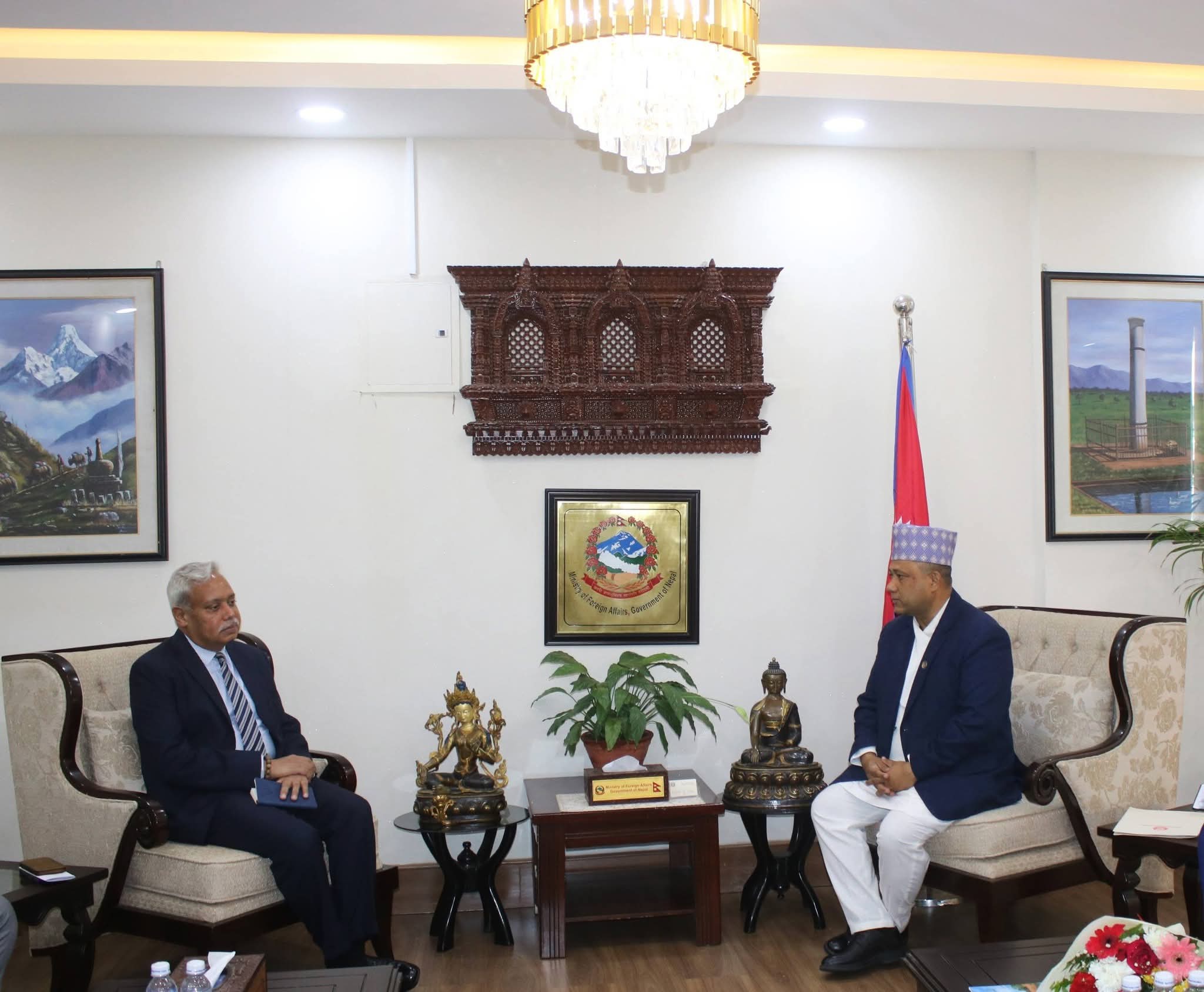 काठमाडौं । नेपालका लागि भारतीय राजदूत नवीन श्रीवास्तवले आज परराष्ट्रमन्त्री शिशिर खनालसँग शिष्टाचार भेट गरेका छन्। सिंहदरबारस्थित परराष्ट्र मन्त्रालयमा भएको सो भेटमा राजदूत श्रीवास्तवले मन्त्री खनाललाई उनको नियुक्तिपछि भारतीय विदेशमन्त्री डा. एस. जयशंकरको हार्दिक शुभकामना…