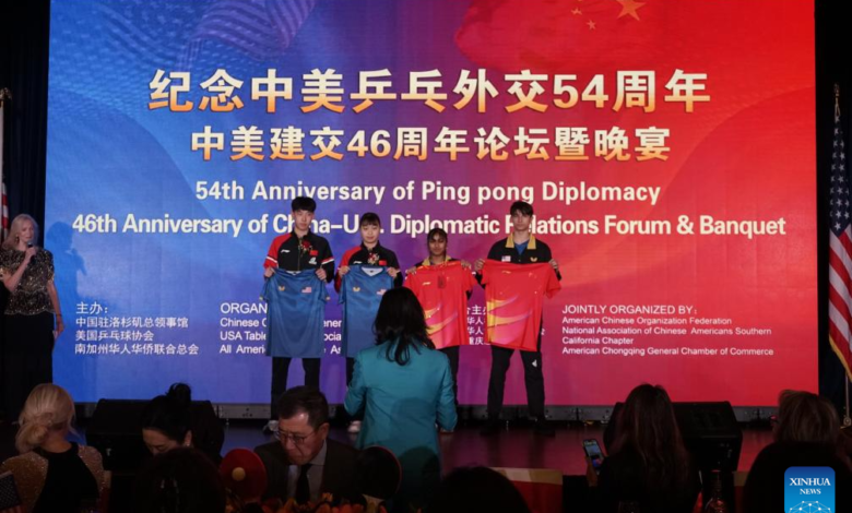 लस एन्जलस, । चीन र अमेरिकाका सयौं राजनीतिज्ञ, कूटनीतिज्ञ र खेलाडीहरूले सोमबार लस एन्जलस काउन्टीस्थित प्यासिफिक पाम्स रिजर्टमा चीन-अमेरिका ‘पिङ्गपङ्ग कूटनीति’ को ५४औं वार्षिकोत्सव मनाएका छन्।