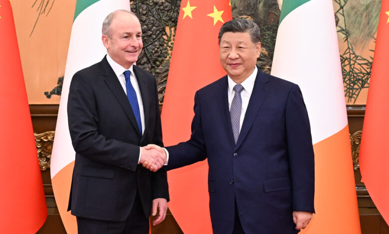 सोमबार बेइजिङमा आयरल्यान्डका प्रधानमन्त्री (ताओइसेख) माइकल मार्टिनसँगको भेटमा राष्ट्रपति सीले आर्थिक तथा व्यापारिक सहकार्य विस्तार, कृत्रिम बुद्धिमत्ता, डिजिटल अर्थतन्त्र, औषधि तथा स्वास्थ्यजस्ता क्षेत्रमा विकास रणनीतिहरूको समन्वय, दुईतर्फी लगानी प्रवर्द्धन र साझा विकासतर्फ अघि बढ्ने विषयमा जोड दिए।