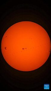 चीनमा सूर्यको परिक्रमा गर्दै स्पेस स्टेशनको दुर्लभ दृश्य