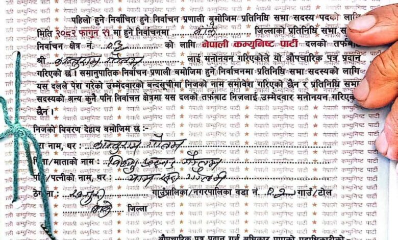 बाँके । प्रतिनिधि सभा निर्वाचनअन्तर्गत बाँके क्षेत्र नम्बर ३ मा नेपाली कम्युनिष्ट पार्टी (नेकपा) भित्र उम्मेदवारीको विषयलाई लिएर विवाद देखिएको छ। नेकपाको तर्फबाट दीपक जी.एम.ले प्रतिनिधि सभा सदस्यका लागि औपचारिक रूपमा उम्मेदवारी दर्ता गरिसकेपछि पुनः कान्तुराम गौतमको नाममा जारी गरिएको आधिकारिक टिकट फेला परेपछि राजनीतिक वृत्तमा अन्योल पैदा भएको हो।