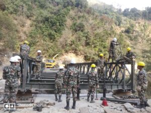 नेपाली सेनाको सिप र समर्पण: ओखलढुङ्गामा ७० फिट बेली ब्रिज जडान पूरा, यातायातमा क्रान्ति