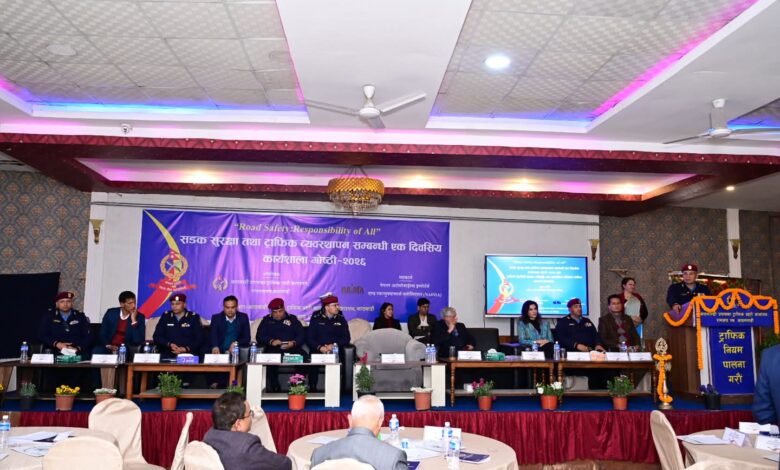 काठमाडौं — काठमाडौं उपत्यकामा बढ्दो सवारी चाप र जटिल ट्राफिक व्यवस्थापनका बीच सडक सुरक्षालाई प्रभावकारी बनाउने उद्देश्यले आयोजित एकदिवसीय कार्यशाला गोष्ठी प्रहरी महानिरीक्षक दान बहादुर कार्कीको प्रमुख आतिथ्यतामा रामशाहपथस्थित ट्राफिक प्रहरी कार्यालयमा सम्पन्न भएको छ।