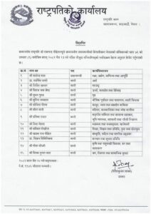 काठमाडौँ । राष्ट्रपति रामचन्द्र पौडेलले मन्त्रीपरिषद्का सदस्यहरूको मर्यादाक्रम हेरफेर गरेका छन्। प्रधानमन्त्री बालेन्द्र शाह (बालेन) को सिफारिसमा नेपालको संविधानको धारा ७६ को उपधारा (९) बमोजिम यो हेरफेर गरिएको हो। नयाँ मर्यादाक्रमले मन्त्रीहरूको हैसियत र प्रोटोकलमा महत्वपूर्ण परिवर्तन ल्याएको छ।