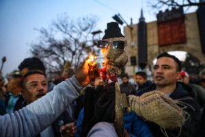 दाङमा राजनीतिक ताप चर्कियो : झण्डा जलाउने घटनाको प्रतिवादमा बालेनको पुत्ला दहन, चर्का नाराबाजी
