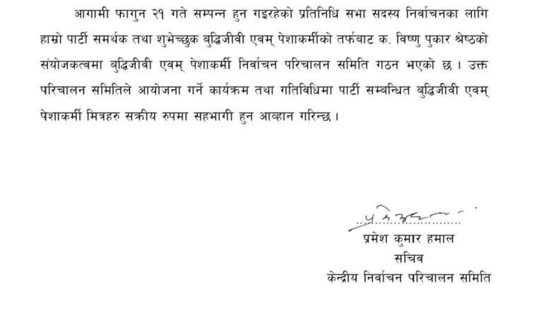 काठमाडौं / फागुन २१ गते हुने प्रतिनिधि सभा सदस्य निर्वाचनको मुखैमा नेपाली कम्युनिस्ट पार्टीले बुद्धिजीवी तथा पेशाकर्मीहरूको परिचालन समिति गठन गरेको छ। पूर्वराजदूत विष्णुपुकार श्रेष्ठको नेतृत्वमा गठित उक्त समितिले निर्वाचनमा सक्रिय सहभागिताका लागि आह्वान गरेको सूचना सार्वजनिक भएको छ। यो साधारण नियुक्ति होइन। यसले नेपाली कम्युनिस्ट पार्टीको वैचारिक दिशा र अन्तर्राष्ट्रिय सम्बद्धताबारे गम्भीर प्रश्न उठाएको छ। विगत लामो समयदेखि पश्चिमा योजना अनुसार चीन विरोधी र स्वतन्त्र तिब्बतको पक्षमा गतिविधि सञ्चालन गरिरहेका व्यक्तिलाई निर्वाचन परिचालनको जिम्मेवारी दिनुले नेपाली कम्युनिस्ट पार्टी कुन शक्ति केन्द्रको एजेन्डा अनुसार चलेको छ भन्ने स्पष्ट संकेत गर्छ।