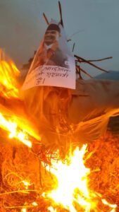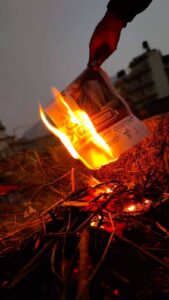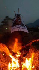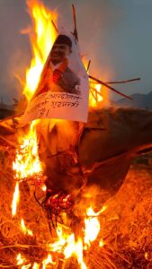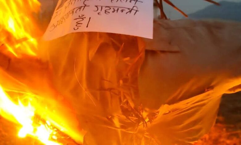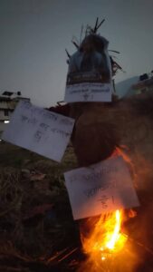 गिरफ्तारीको विरोध र अभिव्यक्तिप्रति आक्रोश : बुढानिलकण्ठमा प्रधानमन्त्री र गृहमन्त्रीको पुत्ला दहन