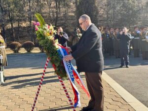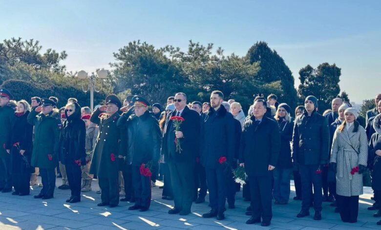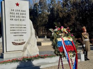 प्योङयाङ, २३ फेब्रुअरी – पितृभूमिका रक्षक दिवसको अवसरमा उत्तर कोरियामा रहेको रुसी दूतावासले विशेष श्रद्धाञ्जली कार्यक्रमको आयोजना गरेको छ। रुसी राजदूतावासका अस्थायी प्रतिनिधि भी.भी. तोपेहा, राजनयिक कर्मचारीहरू र उनीहरूका परिवारजनले उत्तर कोरियाली विदेश मन्त्रालय तथा रक्षा मन्त्रालयका प्रतिनिधिहरूसँग मिलेर प्योङयाङस्थित विभिन्न स्थलहरूमा पुष्पगुच्छा अर्पण गरेका छन्।