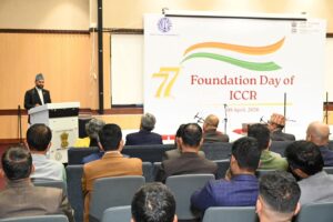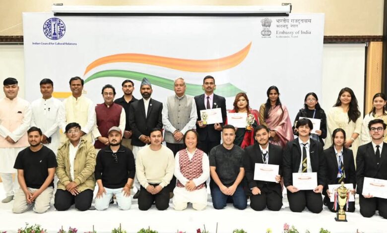 काठमाडौं । भारतीय सांस्कृतिक सम्बन्ध परिषद (आईसीसीआर) को ७७ औं स्थापना दिवसको अवसरमा नेपालस्थित भारतीय राजदूतावासले एक भव्य सांस्कृतिक कार्यक्रमको आयोजना गरेको छ। कार्यक्रममा नेपाल सरकारका संस्कृति, पर्यटन तथा नागरिक उड्डयनमन्त्री खडकराज पौडेल प्रमुख अतिथिका रूपमा उपस्थित भई समारोहको गरिमा बढाएका थिए।