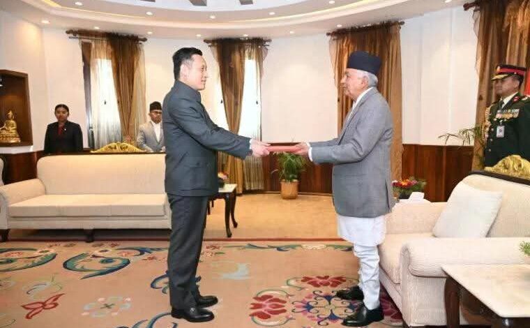 काठमाडौं : राष्ट्रपति रामचन्द्र पौडेलसमक्ष चीनसहित पाँच मुलुकका राजदूतहरूले मंगलबार आ–आफ्नो ओहोदाको प्रमाणपत्र प्रस्तुत गरेका छन्। राष्ट्रपति भवनमा आयोजित विशेष समारोहमा उनीहरूले प्रमाणपत्र बुझाएका हुन्।