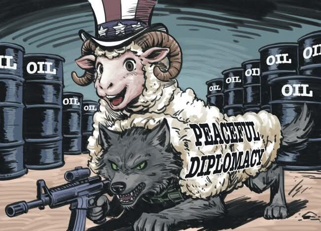 काठमाडौं, ३ मार्च / चिनियाँ सञ्चारमाध्यमले एक व्यंग्यात्मक कार्टुन मार्फत मध्यपूर्वमा अमेरिकी नीतिको पर्दाफास गरेको छ। ‘ब्वाँसो भेडाको छालामा’ शीर्षक दिइएको उक्त कार्टुनमा मध्यपूर्वको तेलमाथि अमेरिकी नियन्त्रणको लोभ र त्यसलाई शान्तिपूर्ण कूटनीतिको आवरण दिने प्रवृत्तिलाई तीखो व्यंग्य गरिएको छ।