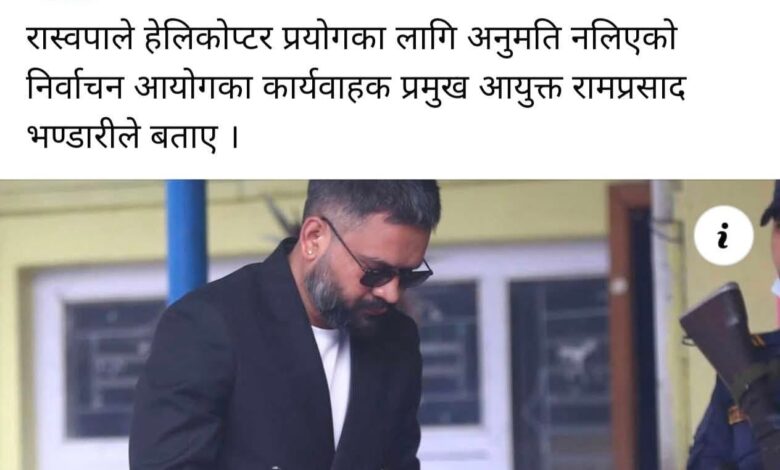 काठमाडौं — निर्वाचन प्रक्रियासँग जोडिएका पछिल्ला निर्णय र अभिव्यक्तिहरूले राजनीतिक वृत्तमा नयाँ बहस जन्माएको छ। हेलिकप्टर प्रयोगका लागि अनुमति दिइएको विषय, सम्पत्ति शुद्धीकरण सम्बन्धी मुद्दा चलिरहेकै अवस्थामा शपथ ग्रहणको सम्भावना, तथा निर्वाचन परिणाम सार्वजनिक नहुँदै प्रतिनिधिसभा सदस्यका रूपमा सम्बोधन गरिएको प्रसंगले प्रश्नहरूको घेरो फराकिलो बनाएको छ।