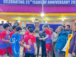 क्योङ्सा सेवा सङ्गठनको रजत जयन्ती समारोहमा मन्त्री लिम्बू सहभागी, भेट्रान फुटबलको उपाधि विधायक टोलीलाई