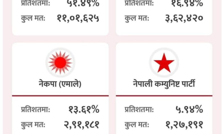 समानुपातिक मतगणनामा राष्ट्रिय स्वतन्त्र पार्टीको भारी मत अन्तर, कांग्रेस र एमाले पछि परे