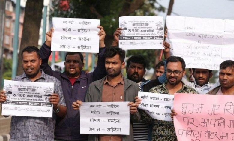एक सय रुपैयाँभन्दा माथिको सामानमा कर लगाउने नीतिविरुद्ध काठमाडौँमा प्रदर्शन, ‘सीमा शोषण बन्द गर’ नारा