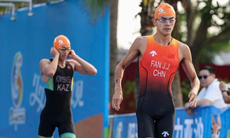 सान्या चीन – चीनको राष्ट्रिय ट्रायथलन टोलीका नवदम्पती सदस्य फान जुन्जी र लिन सिन्युले मङ्गलबार छैटौं एसियाली समुद्र तट खेलकुदअन्तर्गत एक्वाथलनको व्यक्तिगत स्पर्धामा स्वर्ण पदक जित्दै प्रतियोगिताकै पहिलो दुई स्वर्ण आफ्नो नाममा पारेका छन्। सँगै जन्मदिन मनाउन लागेका यी दुई खेलाडीको यो जितले प्रतियोगिताको रोमाञ्चक सुरुवात गरेको छ।
