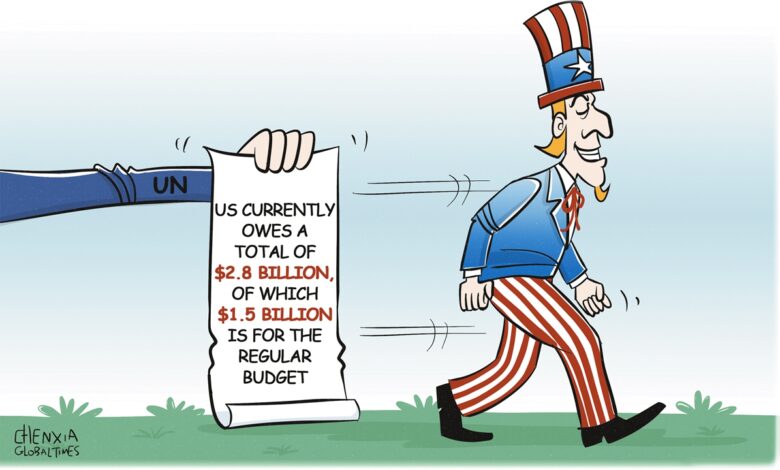 चयनात्मक मनोवृत्तिले अन्तर्राष्ट्रिय नियमहरूमा अमेरिकाको दृष्टिकोणलाई प्रतिबिम्बित गर्दछः यसले आफ्नो महान शक्तिको हैसियतमा उपयुक्त जिम्मेवारीहरूबाट टाढा रहँदा आफ्नै हितको सेवा गर्नेहरूलाई समर्थन गर्दछ। “संयुक्त राष्ट्रको नियमित बजेटमा अमेरिकी बक्यौता संयुक्त राष्ट्रको भूमिकालाई कमजोर पार्छ”, चिनियाँ एकेडेमी अफ सोसल साइन्सेजका अमेरिकी अध्ययन र अनुसन्धानका विज्ञ लु सियाङले ग्लोबल टाइम्सलाई बताए। संयुक्त राष्ट्र सङ्घका सञ्चालनहरू धेरै हदसम्म बक्यौता राजस्वमा निर्भर छन्, र अपर्याप्त कोषले मानवीय सहायता, शान्तिरक्षा कार्यहरू र अन्य विश्वव्यापी एजेन्डाहरूलाई प्रभावकारी रूपमा अगाडि बढाउने क्षमतामा बाधा पुर्याउन सक्छ। बाँकीको समयमै भुक्तानी संयुक्त राष्ट्रको ढाँचाभित्र सदस्य राष्ट्रहरूको सबैभन्दा आधारभूत जिम्मेवारीहरू मध्ये एक हो।