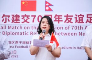 काठमाडौँ । नेपाल र चीनबीच दौत्यसम्बन्ध स्थापना भएकाे ७० औँ वार्षिकोत्सवको उपलक्ष्यमा चीनको व्यापारिक सहर क्वाङचौँ (ग्वान्झाउ)मा मैत्रीपूर्ण फुटबल प्रतियाेगिता आयाेजना गरिएकाे छ ।