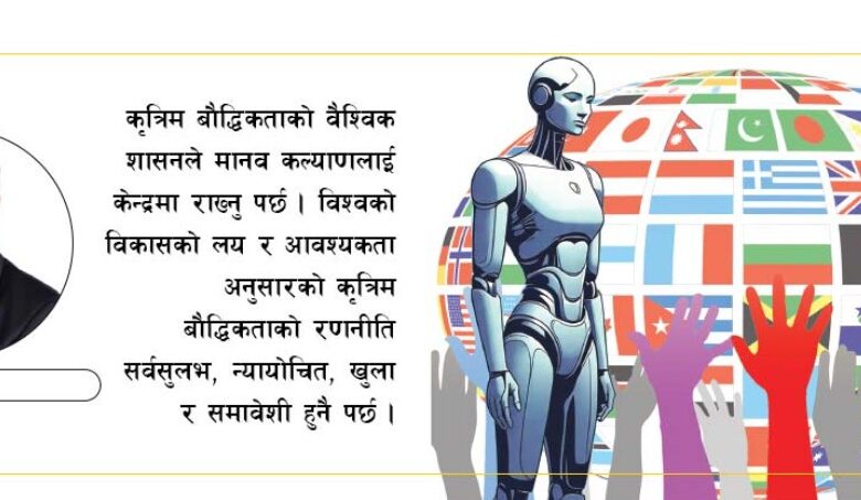 कृत्रिम बौद्धिकताको वैश्विक शासनले मानव कल्याणलाई केन्द्रमा राख्नु पर्छ । विश्वको विकासको लय र आवश्यकता अनुसारको कृत्रिम बौद्धिकताको रणनीति सार्वसुलभ, न्यायोचित, खुला र समावेशी हुनै पर्छ । एआई विकासको लक्ष्य सधैँ चुनौती समाधान र विकास प्रवर्धनमा केन्द्रित रहनु पर्छ । कृत्रिम बौद्धिकताको वैश्विक शासन सम्पूर्ण मानव जातिको साझा भविष्यसँग सम्बन्धित विषय भएकाले सबै राष्ट्रले हातेमालो गर्दै, सहकार्य सुदृढ पार्दै, जोखिमलाई संयुक्त रूपमा नियन्त्रण गरे मात्र एआई वास्तवमै सर्वसाधारणसम्म पुग्न सक्ने छ, सबैको हितमा प्रयोग हुने छ । मानव जातिलाई लाभ पुर्याउने प्रविधि बन्न सक्ने छ ।
