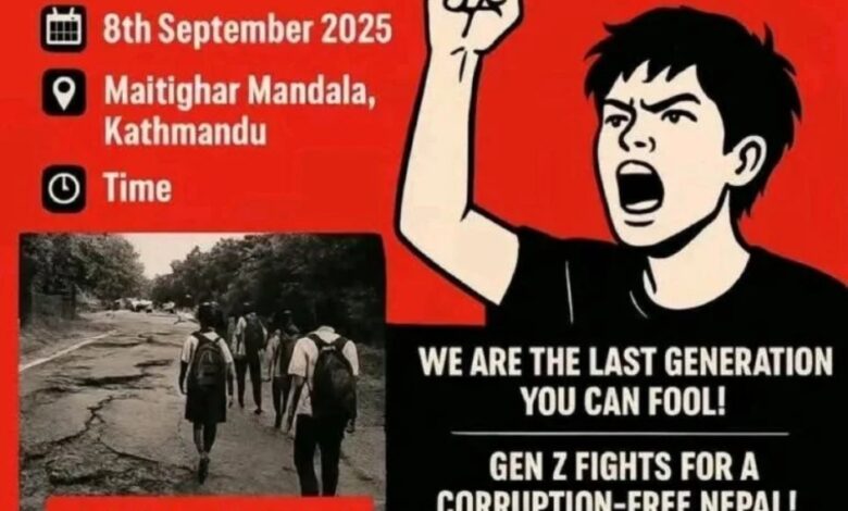 काठमाडौं । सामाजिक संजाल बन्द गर्ने सरकारको निर्णयविरुद्ध जेनजी पुस्ताले सोमबार काठमाडौंमा प्रदर्शन गर्ने भएका छन् । सामाजिक सञ्जाल बन्दको विरोध र भ्रष्टाचारविरूद्ध उनीहरूले काठमाडौंको माइतीघर मण्डलमा प्रदर्शन गर्न लागेका हुन् ।