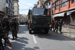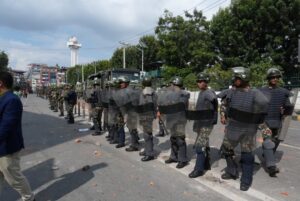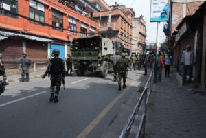 काठमाडौँ । जेनजीको प्रदर्शनसँगै कर्फ्यु आदेश जारी भएसँगै नयाँ बानेश्वर क्षेत्रमा सेना परिचालन गरिएको छ । जेनजीको प्रदर्शन उग्र बनेसँगै स्थितिलाई नियन्त्रणमा लिन सेना परिचालन गरिएको हो ।