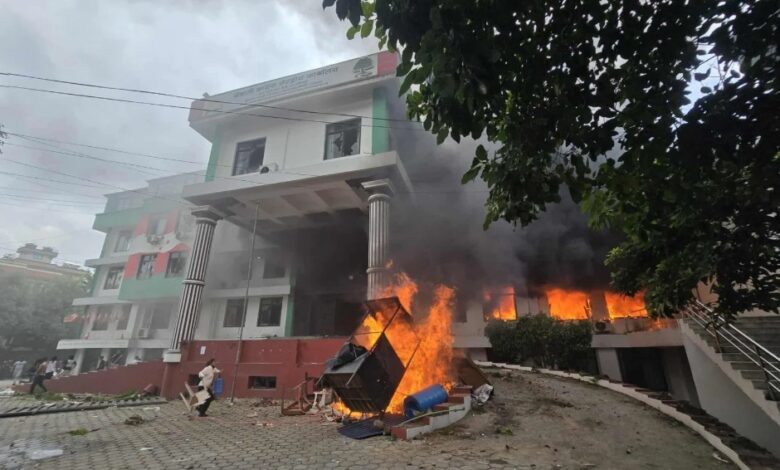 काठमाडौं । आन्दोलनकारीले सत्तारुढ नेपाली कांग्रेसको पार्टी कार्यालयमा आगजनी गरेका छन् । आन्दोलनकारीले ललितपुरको सानेपास्थित कांग्रेस पार्टी कार्यालयमा आगजनी गरेका हुन् । उता आन्दोलनकारीले एमाले पार्टी कार्यालयमा पनि आगजनी गरेका छन् ।