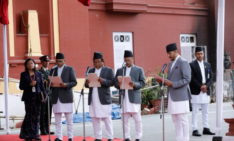काठमाडौं । अन्तरिम सरकारका नवनियुक्त चार मन्त्रीले शपथ लिएका छन् । सोमबार राष्ट्रपति निवास शीतलनिवासमा आयोजित विशेष समारोहमा राष्ट्रपति रामचन्द्र पौडेलले उनीहरुलाई शपथ ग्रहण गराएका हुन् ।