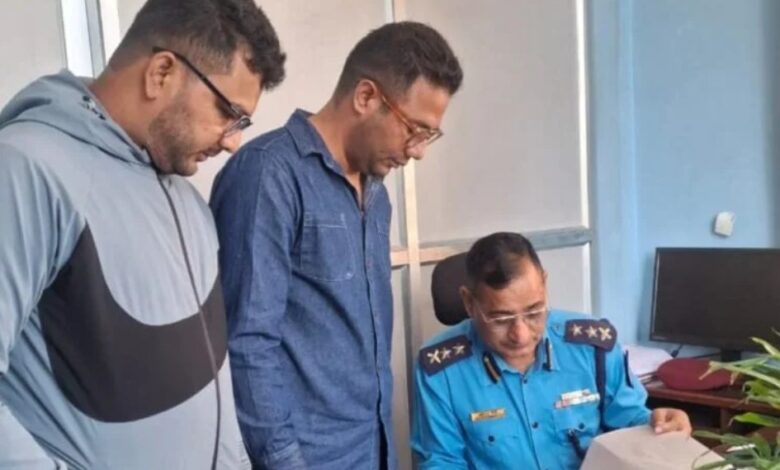 नेविसंघका केन्द्रीय सदस्य मनिषजंग थापा, अशोक सिंह बिष्ट र विजय शाहले संयुक्त रूपमा आइतबार जिल्ला प्रहरी परिसर काठमाडौंमा जाहेरी दिएका हुन् ।