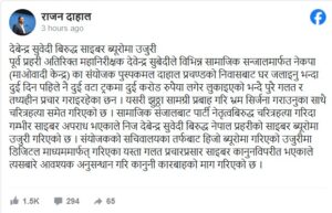 झुठा सामग्री प्रवाह गरी भ्रम सिर्जना गराउनुका साथै चरित्रहत्या गरेकाले सुवेदीविरुद्ध प्रचण्डको सचिवालयले आइतबार साइबर ब्यूरोमा उजुरी दिएको माओवादी नेता लेखनाथ दाहालले जानकारी दिएका छन् ।