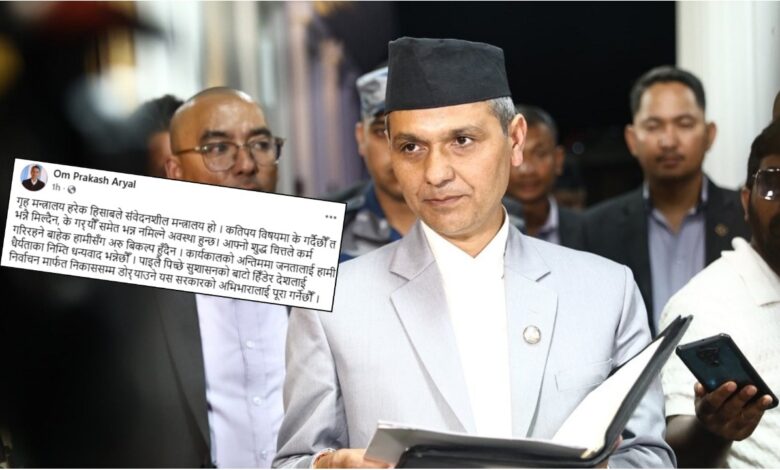 जेनजी आन्दोलनको भावनाअनुसार काम गर्न नसकेको भन्दै आलोचना खेपिरहेका गृहमन्त्री ओमप्रकाश अर्यालले परिणाममुखी कामका लागि धर्य गर्न आग्रह गरेका छन् ।