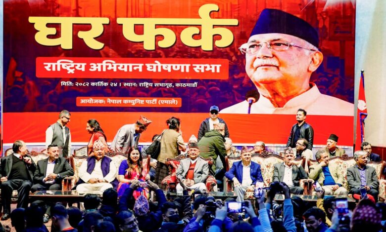 एमालेको ‘घर फर्कनू’ भन्ने उर्दी देखेर एउटा कार्यकर्ताले पार्टी अध्यक्ष केपी शर्मा ओलीलाई सोधेछन्– कमरेड, तपाईंंले सबैलाई घर फर्कनू त भन्नुभयो तर फर्केर आए भने कहाँ राख्ने ? हाम्रो घर त जलिसकेको छ ।’