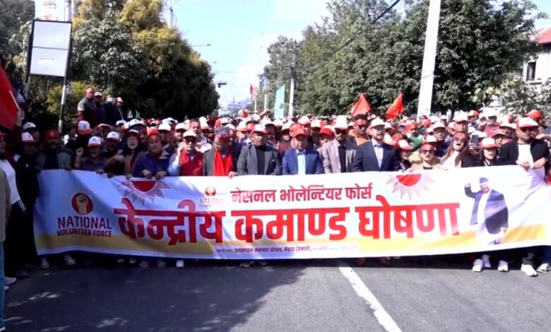 अध्यक्ष केपी शर्मा ओलीसहित पार्टीका नेताहरूको सुरक्षाका लागि भन्दै गठन गरेको नेसनल भोलेन्टियर फोर्स घोषणाअघि युवा-कार्यकर्ता शक्ति प्रदर्शन गर्न सडकमा निस्किएका हुन् । बबरमहलदेखि बानेश्वरसम्म जुलुस गर्ने तयारी छ ।