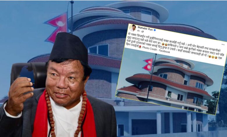 ‘यो घरको नक्सा डिजाइन गर्ने इञ्जिनियररलाई सख्त कारवाही हुनुपर्छ । अनी घोर बेइजती तथा मानहानीको मुद्दा लगाउनु पर्छ भन्ने मेरो माग छ’, मन्त्री पुनले भनेका छन्, ‘हाकिम(ओली)ले दुई जना बस्ने कुटी बनाउभन्दा यत्रो ठूलो दरबारको नक्सा बनाइदिन हुन्छ त !’